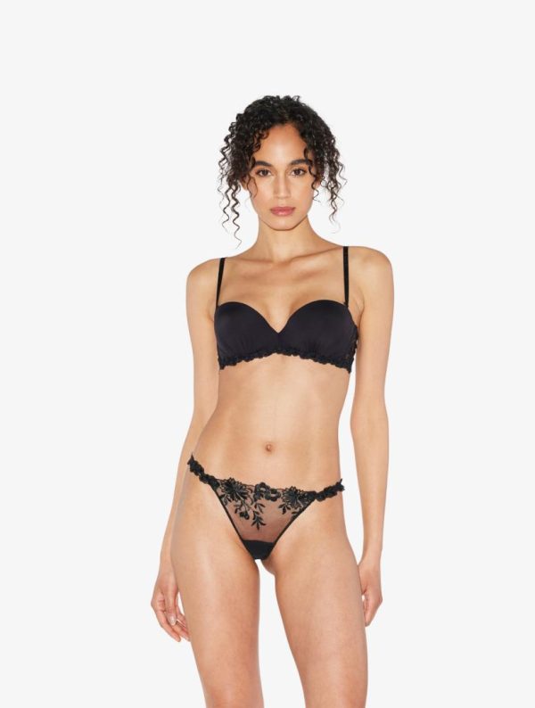 The Zephyr collection highlights La Perla’s heritage of fine craftsmanship, translating this with a youthful twist. Rich floral embroidery and sheer panels add precious accents to these contemporary Lycra pieces. This bandeau bra has a seamless construction that makes it perfect for wear with t-shirts and slim-fitting silhouettes. An embroidered tulle trim adds a feminine flourish along the band. Padded and underwired cups support and enhance the bust.