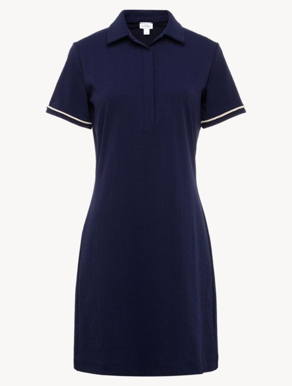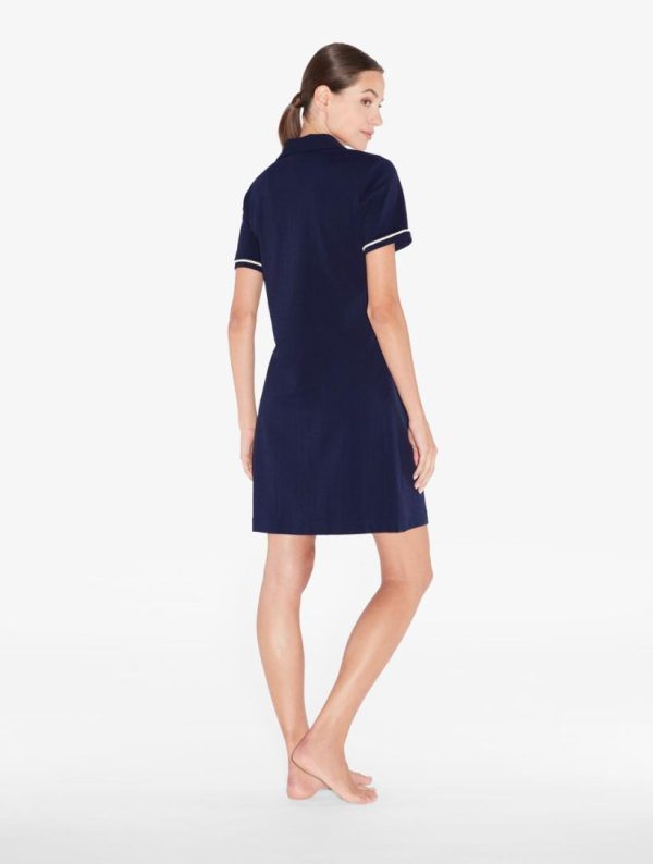 Blending elegant sophistication with a modern nautical spirit, the La Perla Signature Polo Dress in blue is elevated with the iconic LP monogram in a tonal jacquard. Cut to an effortlessly chic, contemporary silhouette, it’s finished with contrasting cordonette detailing at the sleeves for timeless resort style. Wear as the perfect cover-up for the co-ordinating swimear or style with sandals or heels for versatile day-to-night dressing.