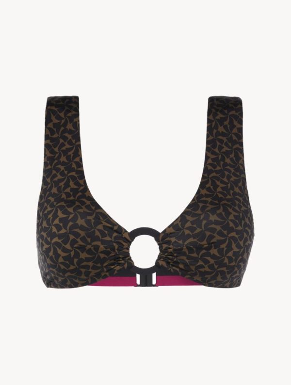 Blending a flawless silhouette with a flattering cut, the Summer Winds bralette bikini top is conjured in a sophisticated Dark Green and Black print. A contemporary take on a timeless classic, the wireless style is finished with a striking ring detail and comes with removable padding to offer an exquisite blend of comfort and luxury.