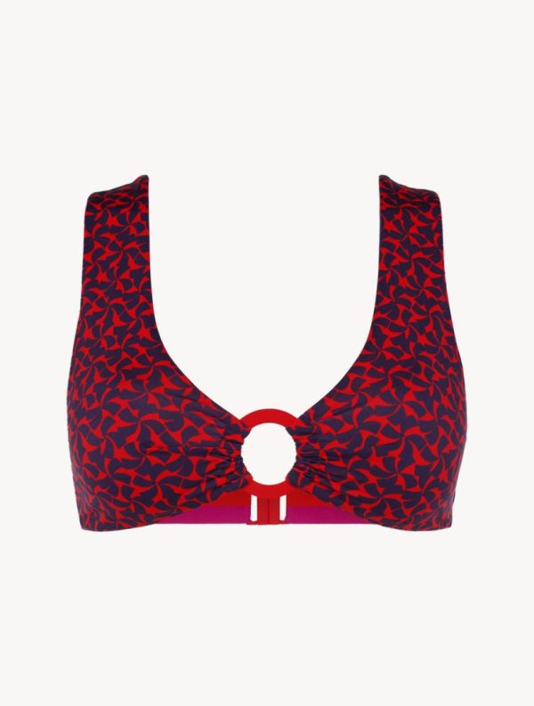 Blending a flawless silhouette with a flattering cut, the Summer Winds bralette bikini top is conjured in a sophisticated Red and Blue print. A contemporary take on a timeless classic, the wireless style is finished with a striking ring detail and comes with removable padding to offer an exquisite blend of comfort and luxury. Style with the matching low-cut or belted, high-waisted briefs to perfectly capture irresistible summer elegance.