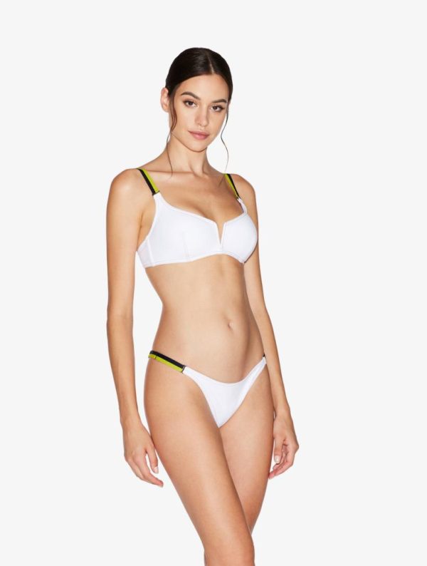 Combining flawless, sophisticated silhouettes with sports-inspired details, the When Summer Comes collection is designed to offer luxurious comfort and make you look and feel incredible whether you’re on the beach or by the pool. Crafted from exquisite stretch Lycra, the Brazilian Bikini Brief in White is cut to a timeless, flattering shape and finished with contrasting stitching and bi-color straps. Style with the matching Bralette, Triangle or Bandeau Bikini Top to complete the look.