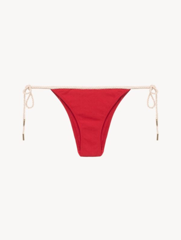 Blending elegant sophistication with a modern nautical spirit, the La Perla Signature Bikini Brief in red is elevated with the iconic LP monogram in a tonal, stretch jacquard. Cut to a chic, contemporary silhouette with a flawless and flattering shape, it’s finished with contrasting cordonette side ties for timeless resort style. Complete the look with the co-ordinating Bandeau or Triangle Bikini Top.