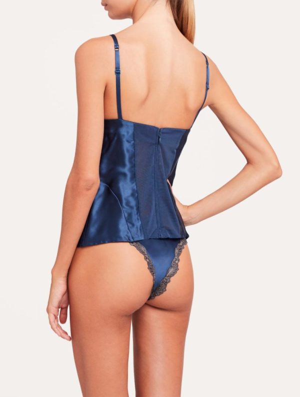 Silk satin body embellished with embroidery on tulle backing in the same colour silk. Finished with hand-embroidered double “frastaglio” embroidery. This process reproduces the effect of flowers framing the décolleté.A modern yet elegant creation that represents the newest and most exquisite style in the La Perla Maison collection