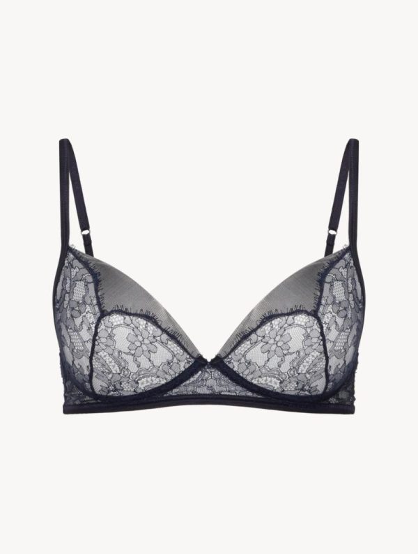 With a beauty that endures, the daring Poesia collection is as versatile as it is seductive. Combining the exquisite blooms of Leavers lace that trail across the skin with the sensual soft touch of luxuriously delicate tulle, the timeless Soft Bralette in Steel Blue and Black is meticulously crafted from upcycled materials found in our Bologna atelier. With wireless silhouette designed to gently support and celebrate the curves of the female form, slip it on to create a flawless finish under your favourite ready-to-wear or pair with the co-ordinating Briefs or Thong for the ultimate statement look.