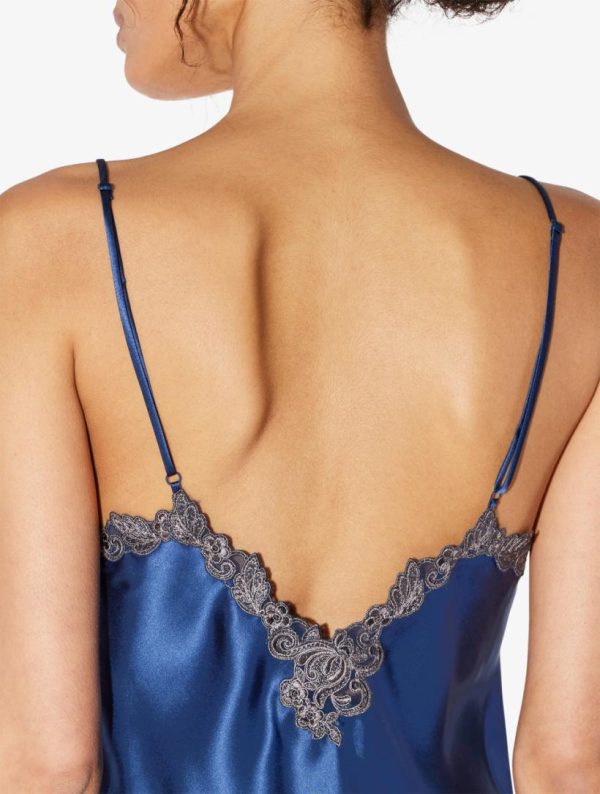 La Perla Maison captures the true spirit of its Made in Italy heritage. Defined by an antique Florentine technique of applying embroidery by hand, this unique piece can take up to two days to create. Crafted from a weightless blue coloured silk-satin, the Maison camisole embodies qualities of preciousness and individuality. The hand-placed frastaglio elegantly frames the necklineand descends into a seductive V at the back. Suspended from two elegant and adjustable straps, the silhouette is cut impeccably and glides over the body offering definition and comfort. Pair with tailored separates for an elegant daywear look.
