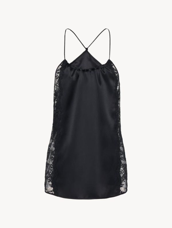 A silk-satin pajama top with an elegant straight fit and an incredibly luxurious feel. Intricate stretch Leavers lace creates a beautiful trail of winding florals that offer a seductive glimpse of bare skin.