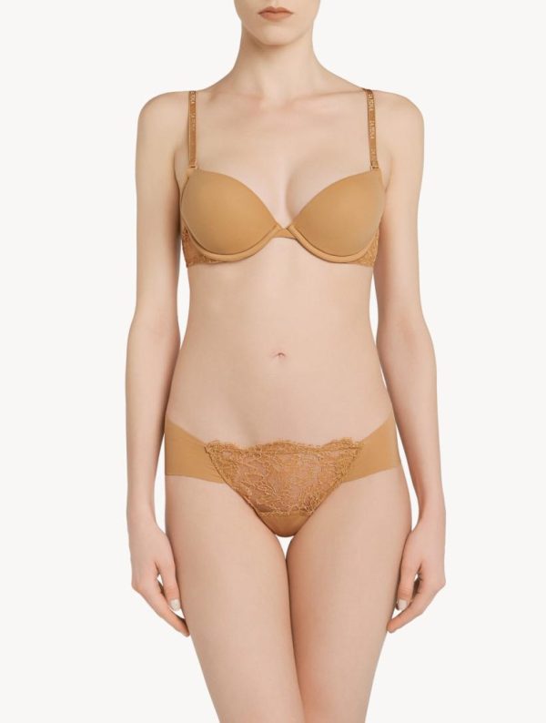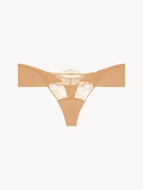 G-string made with LYCRA® Beauty, an extremely comfortable, high-quality fabric with a compact texture. This item is embellished with chantilly lace.