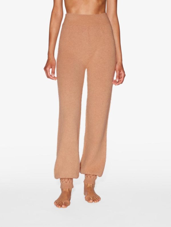 The true embodiment of luxurious comfort, Fluffy Cocoon is a timeless collection of irresistibly soft pieces designed for day-to-day layering and elevated downtime. These beautifully tactile Alpaca blend Trousers are crafted in a sophisticated shade of Camel. Cut to a relaxed silhouette with an elasticated waist, they are exquisitely finished with braided detailing along the cuffed ankles. Complete the look with the matching sweater or style with your favourite wardrobe staples.