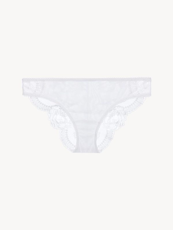 Stretch Leavers lace and tulle medium briefs cut to sit on the waist with a low leg line.