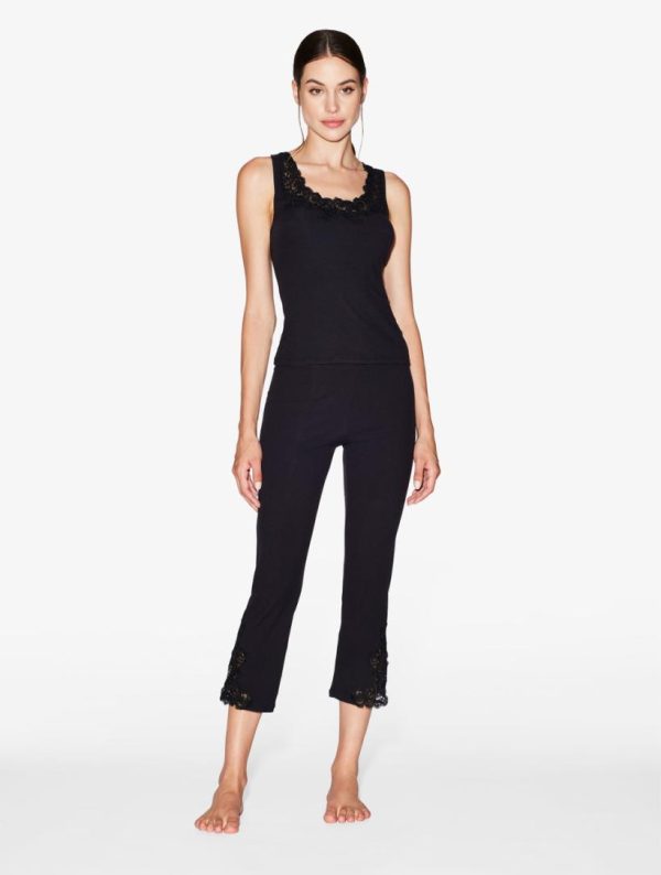 Pajamas | Women La Perla Cashmere Blend Ribbed Trousers In Onyx With Frastaglio