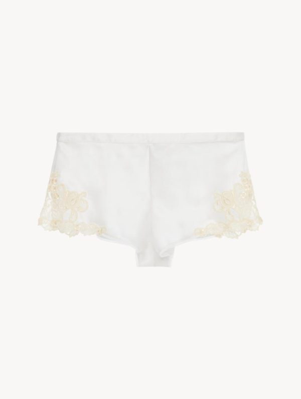 Pajamas | Women La Perla White Silk Satin Sleep Shorts With Frastaglio