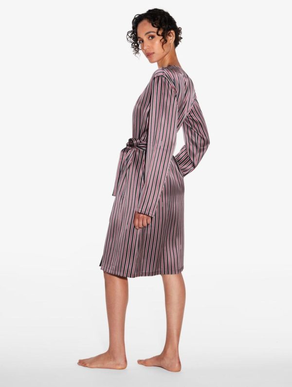 The ultimate cover-up, slip into the timeless elegance of our short silk robe. Conjured in a rich stripes, its wrap-around shape and tactile finish are the perfect blend of comfort and luxury and designed to be treasured for years to come. Pair with the matching pajamas or camisole and sleep shorts for elevated after-dark dressing, everyday.