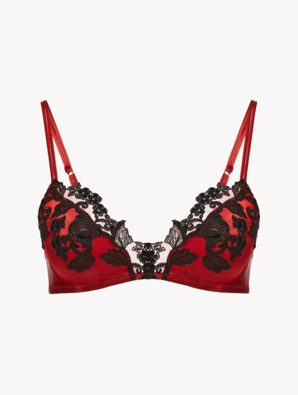 Triangle | Women La Perla Luxury Silk Triangle Bra In Red With Black Frastaglio