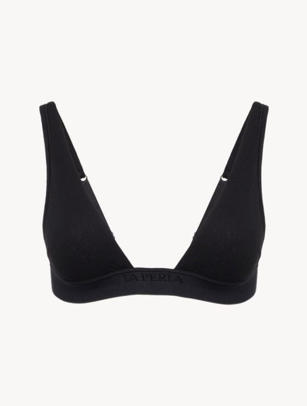 Exclusively online, the Simple Days collection is inspired by our previous Comfort Zone collection, blending luxurious comfort with the simplicity of sporty silhouettes. Thoughtfully crafted from sustainable, soft-stretch cotton rib fabric and finished with a subtle tone-on-tone logo elastic, the Soft Triangle Bra in Black is meticulously cut for a flawless fit and designed to softly underpin your laid-back looks.