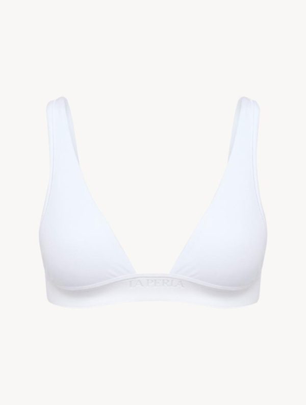 Exclusively online, the Simple Days collection is inspired by our previous Comfort Zone collection, blending luxurious comfort with the simplicity of sporty silhouettes. Thoughtfully crafted from sustainable, soft-stretch cotton rib fabric and finished with a subtle tone-on-tone logo elastic, the Soft Triangle Bra in White is meticulously cut for a flawless fit and designed to softly underpin your laid-back looks.