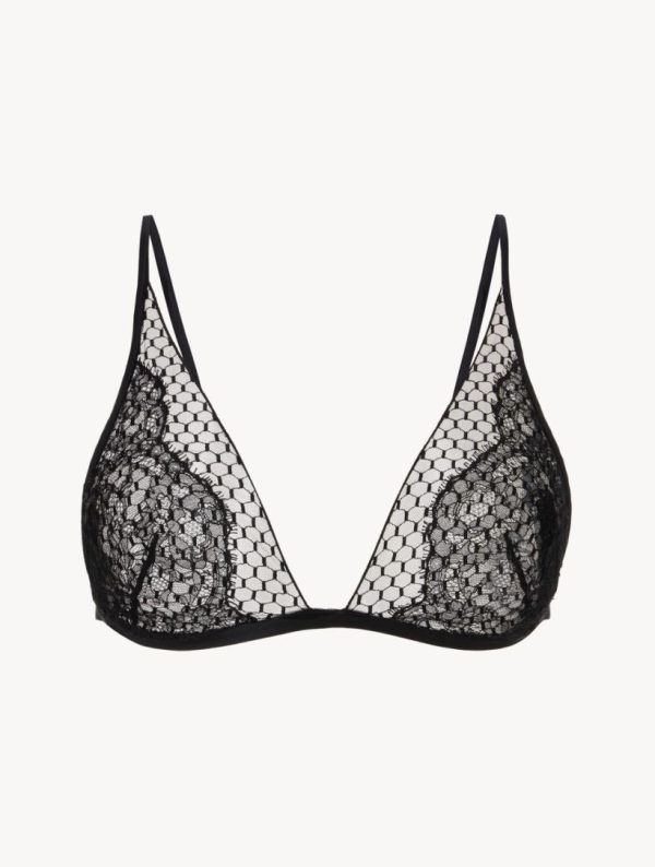 Meticulously crafted from exquisite layers of Leavers Lace and delicate honeycomb mesh that reveal and conceal, the Honeycomb Shadows Triangle Bra in Onyx is the embodiment of true perfection. Radiating sensual sophistication, it’s wireless to offer soft support and finished with delicate ribbon straps. Complete the look with the matching briefs or layer under a shirt or blazer, left a touch unbuttoned to offer glimpses of what lies beneath.